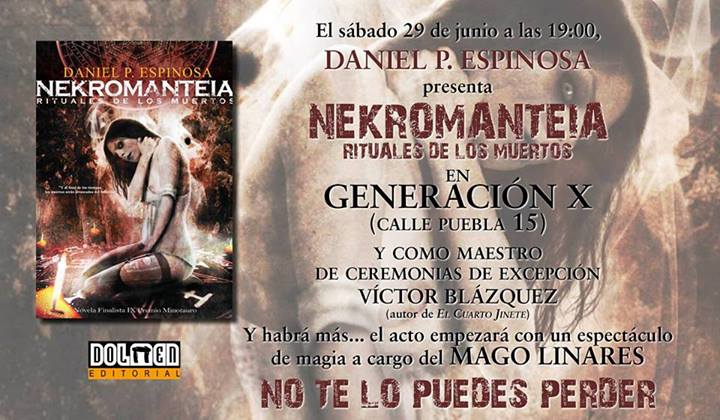 ¿No habéis oído hablar de ella? Pues Nekromanteia tiene el honor de ser una de las novelas finalistas del prestigioso premio Minotauro, ahí es nada. Y este sábado tendréis la oportunidad de conocer al autor, Daniel P. Espinosa, en la presentación que se está preparando en Madrid.