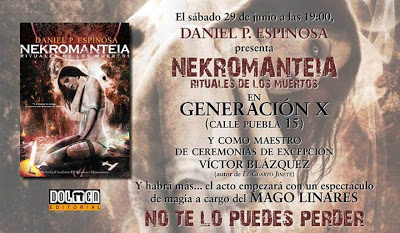 No solamente esto. Presentando al escritor tendremos nada más y nada menos que a Víctor Blázquez (sí, el autor de El cuarto jinete, que he reseñado recientemente por aquí). Si sois aficionados a la fantasía y/o al terror y estáis este sábado en Madrid, por nada del mundo deberíais perderos este evento. Yo, desde luego, no pienso faltar.
