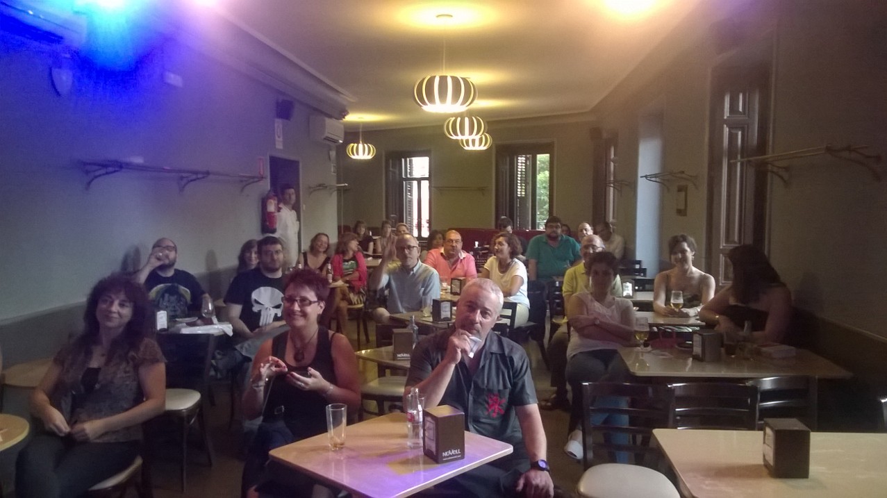 De esta forma, como digo, el martes por la tarde comenzó la presentación en el Café Comercial de Madrid, acompañado sobre todo de amigos y conocidos. Junto a mí, en el escenario, se encontraban el editor, Miguel Ángel de Rus, y mi colega José G. Cordonié, que habló también de 26 [veintiséis]. A mí me suelen parecer entretenidas las presentaciones literarias (en general), y creo que esa lo fue, y bastante. Claro que a ello contribuyó en gran parte la actuación musical de Lara Morello que, a pesar de ser avisada con un escasísimo margen de tiempo, no tuvo ningún problema en acercarse y tocar un par de temas muy apropiados para acompañar a esta novela y en especial a su peculiar protagonista.